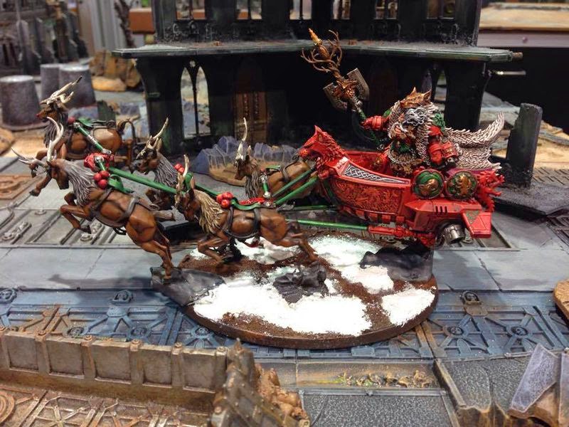 Muy bien pintada esta basura de concepto de miniatura...Si al menos hubiera estado tirado por renos en el modelo original, dirías "ole los dos huevos de la ijaputa de GW", pero lobos tirando de una barca voladora, que cosa más ridícula. Lobos que por cierto te han quedado muy bien.